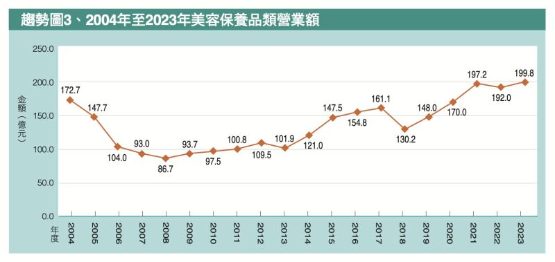 銷售其他類商品(包括精油、開運商品等)的有98家(占總家數29.61%),營業額約為60.89億元,占營業總額5.62%;而銷售清潔用品類的也有98家(占總家數29.61%),營業額約為31.12億元,占營業總額2.87%。