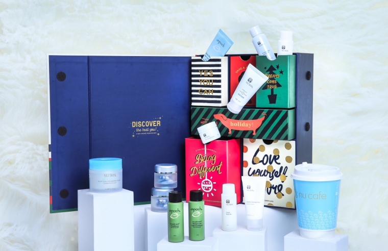 NU SKIN公益聖誕禮盒以企業如新青春之泉形象,結合Pantone年度流行銀河藍(Galaxy Blue)作為主色調,打造法式驚喜禮盒,其別出心裁的10格手繪風格抽屜,富藏品牌精選12道禮品驚喜,包括人氣暢銷潔膚冰河泥、ageLOC活顏倍彈源液、Epoch艾蒲精植洗髮乳及潤髮乳等,不僅可擺設於辦公桌或化妝台一角作收納運用,更是寵愛自己的最佳選擇,為聖誕佳節增添愉悅感受。