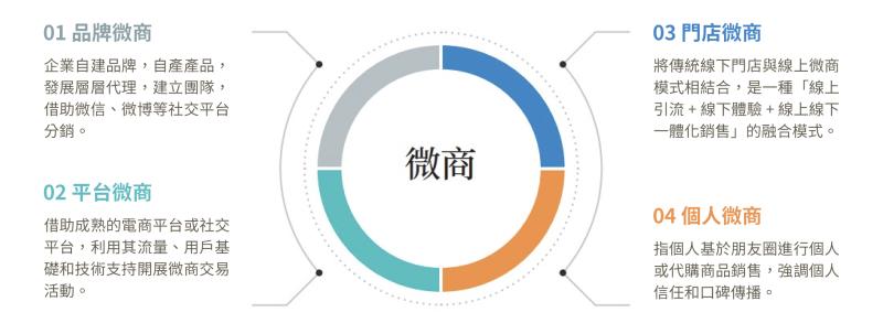 - 個人微商:指個人基於朋友圈進行個人或代購商品銷售,強調個人信任和口碑傳播。