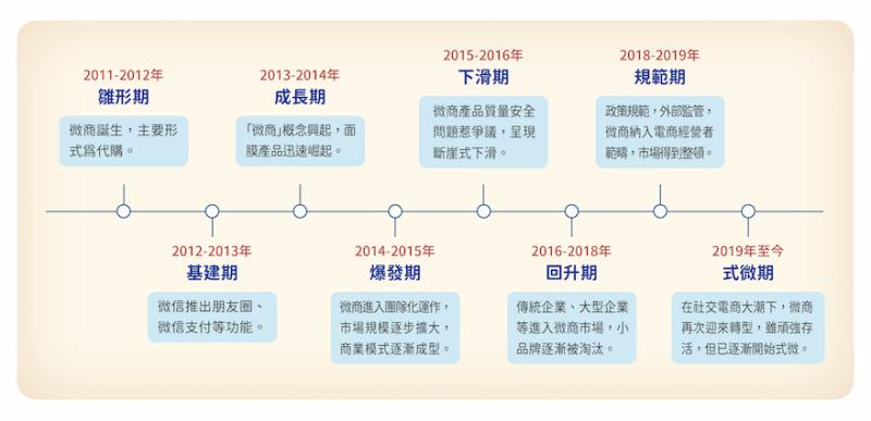 2019年以後,隨著國家法律監管力度加大以及各類新型社交電商的崛起,微商行業逐漸走向規範化,微信小程式等新技術的出現,也為微商帶來了新的發展機遇,微商迎來創新期。